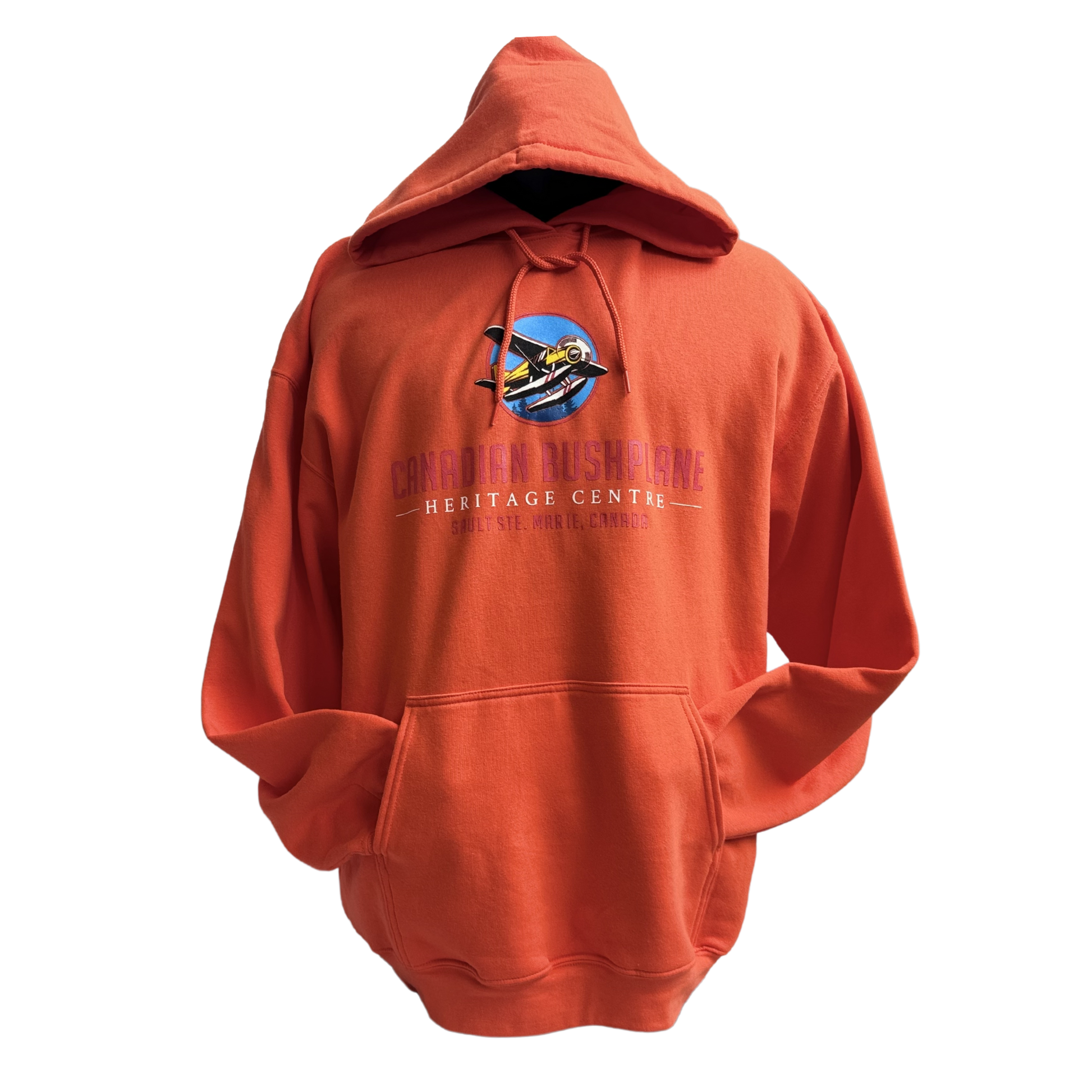 The Canadian Bushplane Heritage Centre Logo Hoodie features a drawstring hood, front pockets and our wonderful logo emblazoned across the front.