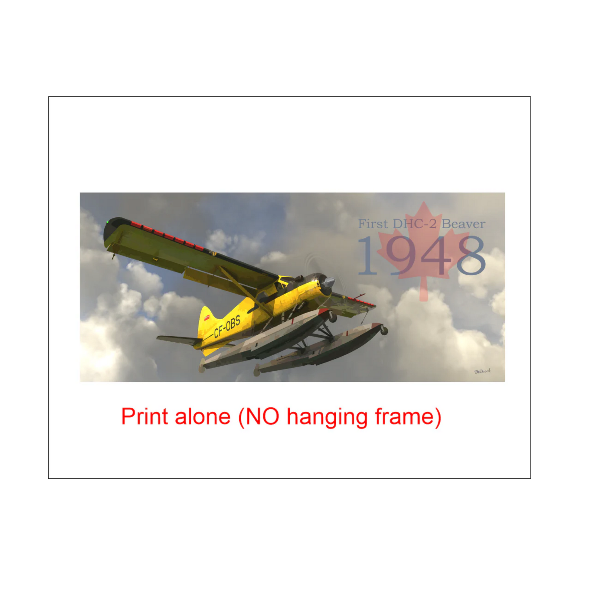 irst DHC-2 Beaver 1948 - This print depicts DHC-2 Beaver CF-OBS, which was the first production Beaver built in 1948 by de Havilland Canada. This plane was flown by the Ontario Department of Lands and Forests Air Service but can be seen today in the Canadian Bushplane Heritage Centre in Sault Ste. Marie, ON!